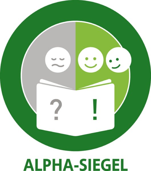 Hier setzt das Alpha-Siegel an, das an Einrichtungen verliehen wird, die sich durch Fachkompetenz im Umgang mit gering Literalisierten auszeichnen und auch die entsprechenden Hilfsangebote kennen. Ein entsprechender Aufkleber an der Fensterfront dient den Betroffenen dabei als Leuchtturm: „An diesem Ort werden Sie und Ihre Bedürfnisse ernst genommen, und die Mitarbeiter*innen werden versuchen, Ihnen zu helfen.“